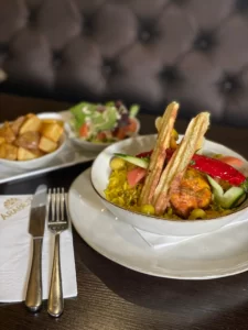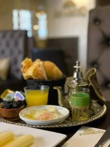 وعندما نتحدث عن الأطباق المغربية فلك أن تتخيل كمية الأصالة في النكهة الممزوجة بنسيم المتوسط.. مختلف اللحوم وبطرق تحضير فريدة، بالإضافة إلى خيارات واسعة لمختلف الأطباق البحرية التي تشتهر بها المنطقة..