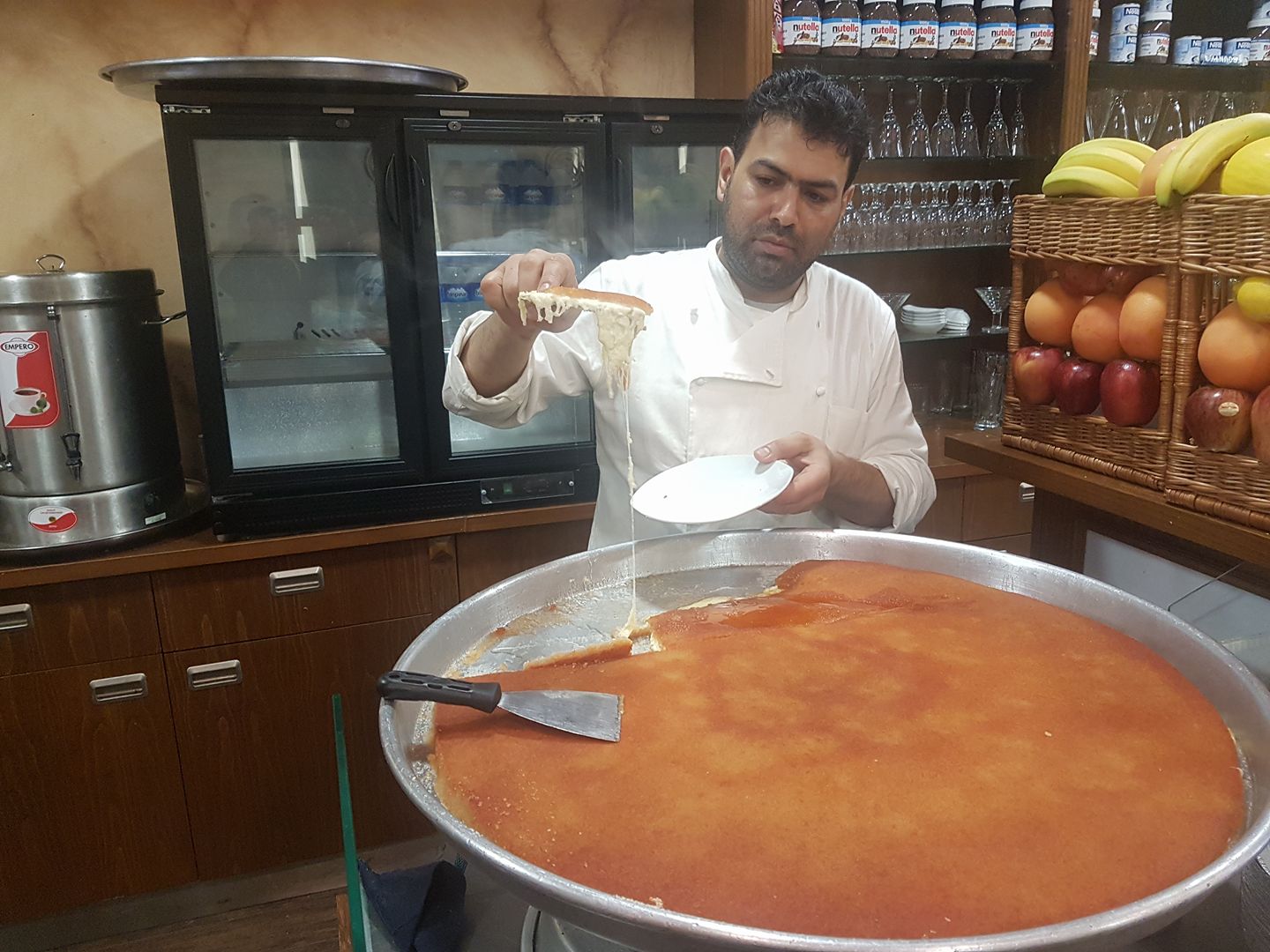 المتبلات بأنواعها وكافة أطباق الإفطار الدمشقي التقليدي.. أضف إلى ذلك تشكيلة مميزة وشهية لمختلف أنواع الحلويات الشرقية والدمشقية..